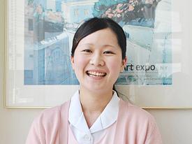 笑顔を忘れず、丁寧な対応を心がてています。不安や恐怖心のある患者さんに安心して治療を受けてもらえるように精一杯頑張ります。